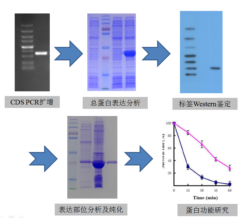 詳細實驗總結(jié)報告(包括CDS克隆、載體構(gòu)建、測序、總蛋白分析、Western blot鑒定、表達部位分析、純化等)。